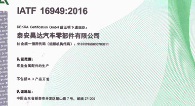 公司擁有IATF16949:2016國際標準質量管理體系認證,擁有實